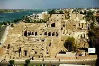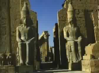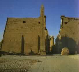 (2) und (3) Eingang des Tempels von Luxor mit dem Hof des Nektanebos und dem Pylon Ramses II. mit den beiden .Kolossalstatuen des Pharaos.